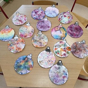 Školní družina doplňuje svoji bohatou činnost projekty. V září jsme ve školní družině realizovali projekt Čas jablíčkových vůní. Další z projektů byly Třídíme odpad, Svatý Martin, Mikuláš. Zapojili jsme do akce škol při zhotovení adventní výzdoby do zámeckého parku. Děti ve školní družině vyrobily dva krásné vánoční stromy, anděly a svícny. Výtvarné práce školní družiny i práce z výtvarných výchov a pracovních činností zdobí vestibul školy i školní chodby. | |